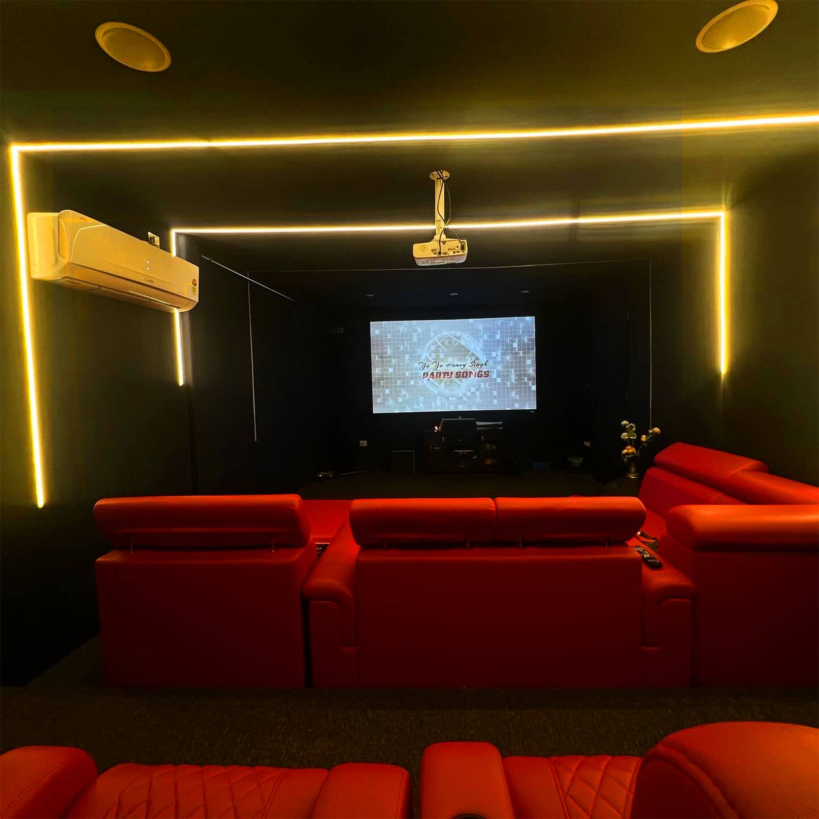 Welcome to Box, a private theater offering luxury for up to 10 guests. Enjoy a 120-inch screen with stunning 4K resolution and Dolby audio for an immersive experience. Relax in plush recliner seating in a fully air-conditioned environment. Box provides the ultimate viewing experience with cutting-edge technology and unparalleled comfort, making every movie night an exclusive and unforgettable event.